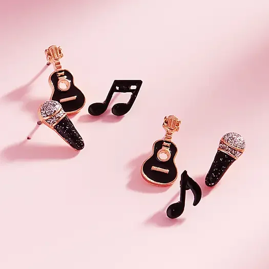 Enamel Guitar Mic Music Note Stud Earring Set | Black