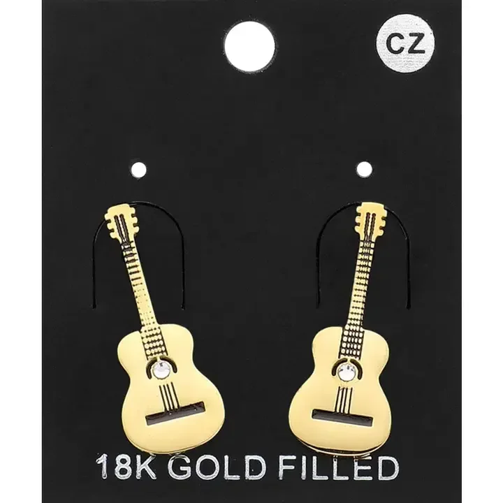 18K Gold Filled Cz Stone Pointed Guitar Plate Earrings