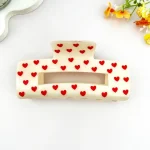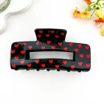 This large Valentine’s Day–inspired hair claw clip features a bold rectangular silhouette with romantic heart cutout details and festive printed patterns. Designed to stand out, it combines playful charm with a modern, eye-catching shape, making it a perfect seasonal accessory for Valentine’s collections and everyday styling alike.